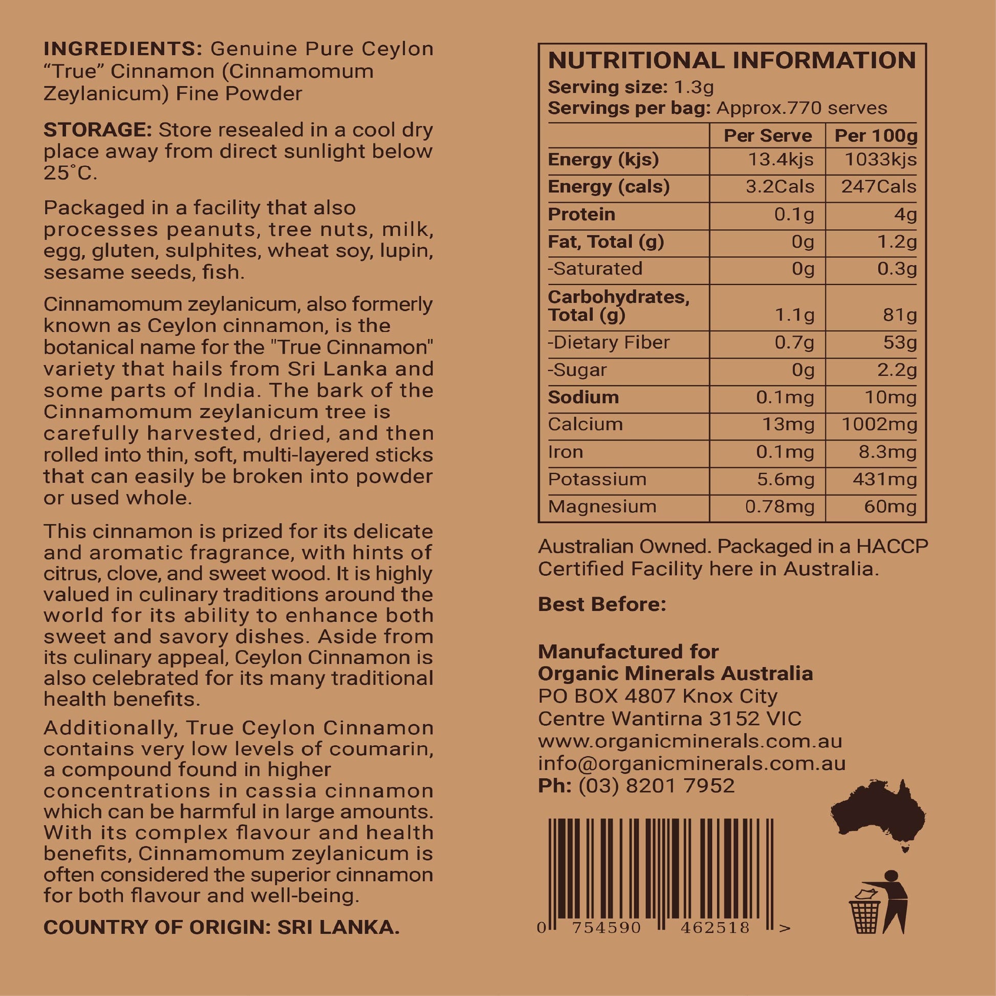 - 100% Pure Ceylon Cinnamon